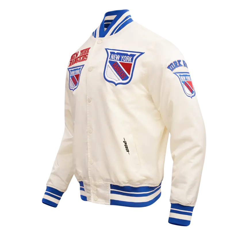 NHL NEW YORK RANGERS RETRO CLASSIC MEN’S RIB SATIN JACKET (EGGSHELL\/ROYAL BLUE)