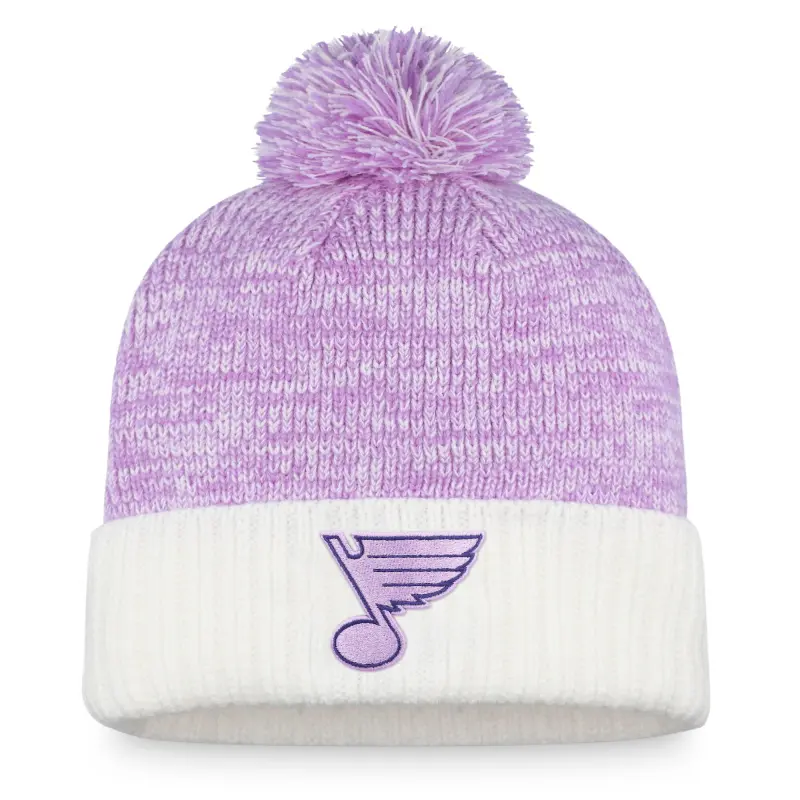 Men’s Fanatics White/Purple St. Louis Blues 2022 Hockey Fights Cancer Authentic Pro Cuffed Knit Hat with Pom