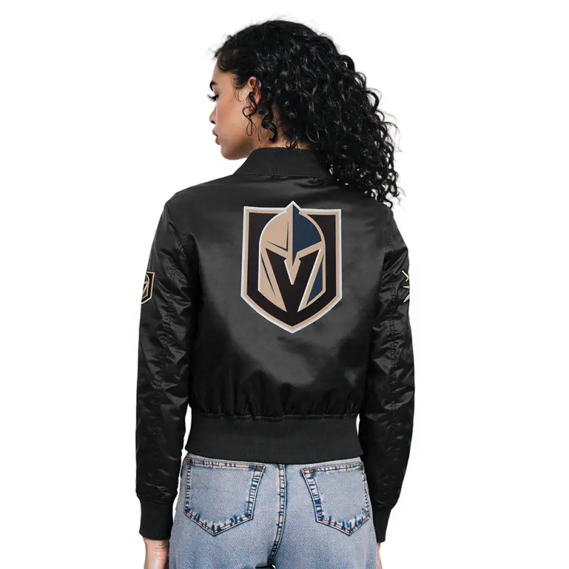 NHL VEGAS GOLDEN KNIGHTS CLASSIC WOMEN’S SATIN JACKET (BLACK)
