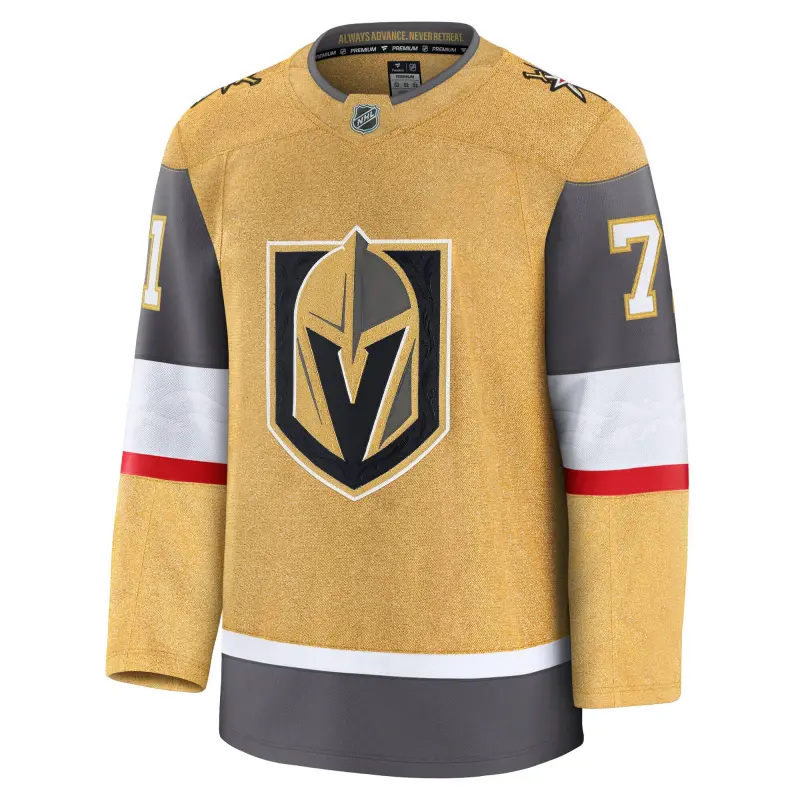 Vegas Golden Knights Fanatics Branded Home Premium Jersey – Gold – Jack Eichel – Mens