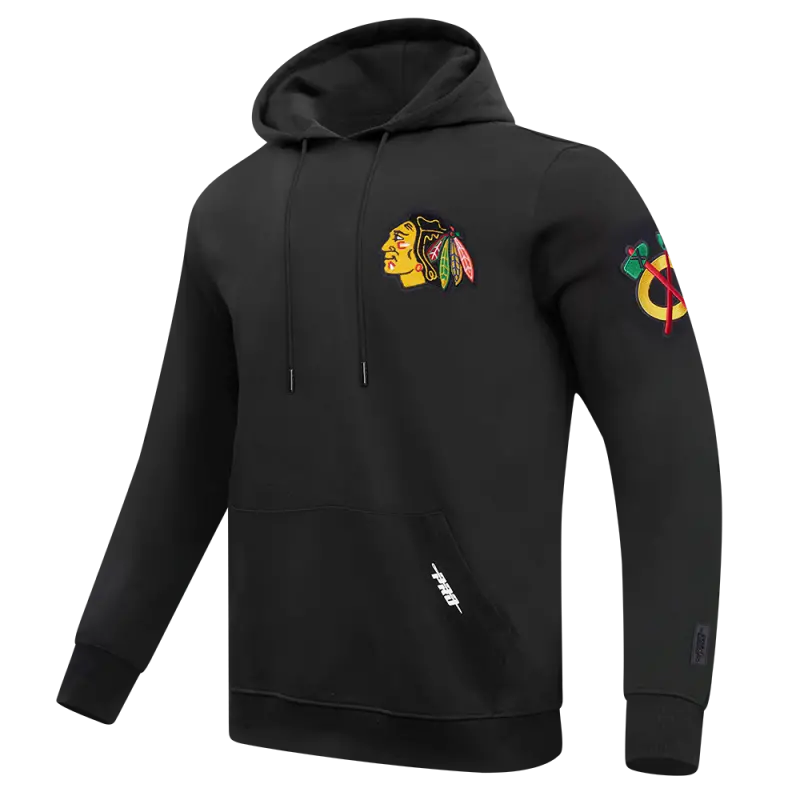 The Pro Standard Premium NHL Chicago Blackhawks Classic Chenille Men’s PO Hoodie (Black)
