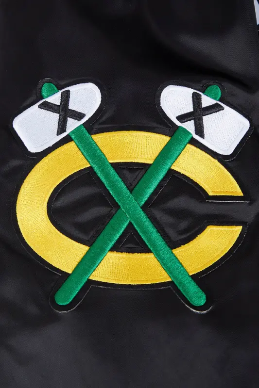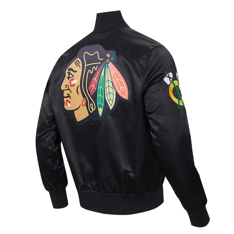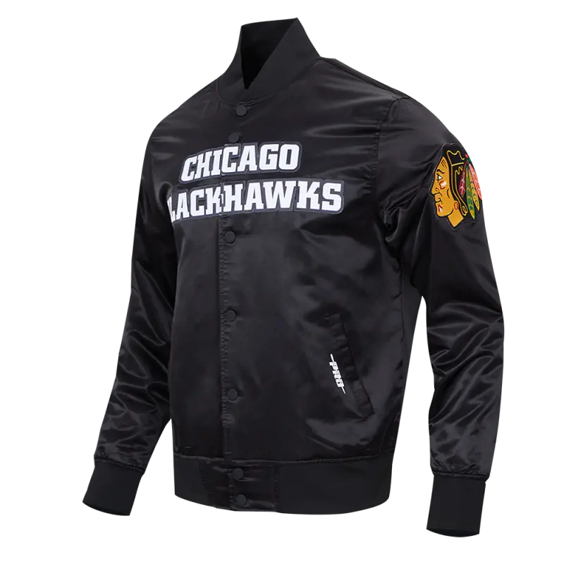 NHL CHICAGO BLACKHAWKS CLASSIC MEN’S SATIN JACKET (BLACK)
