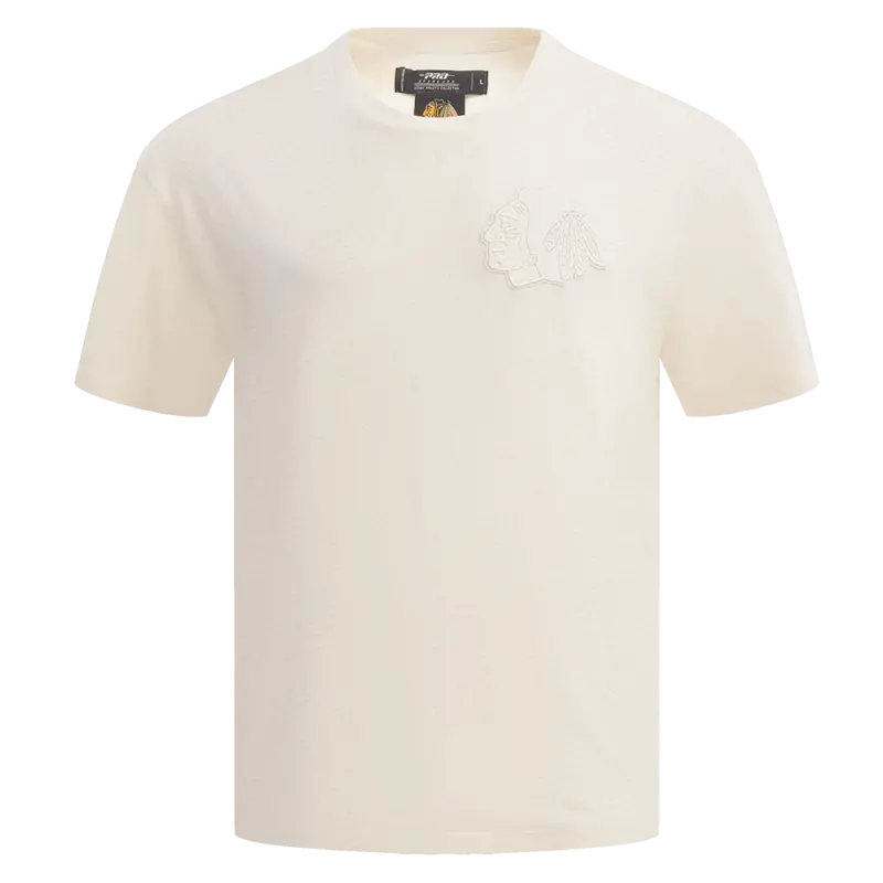 NHL CHICAGO BLACKHAWKS NEUTRAL COTTON JERSEY DROP SHOULDER TEE (EGGSHELL)