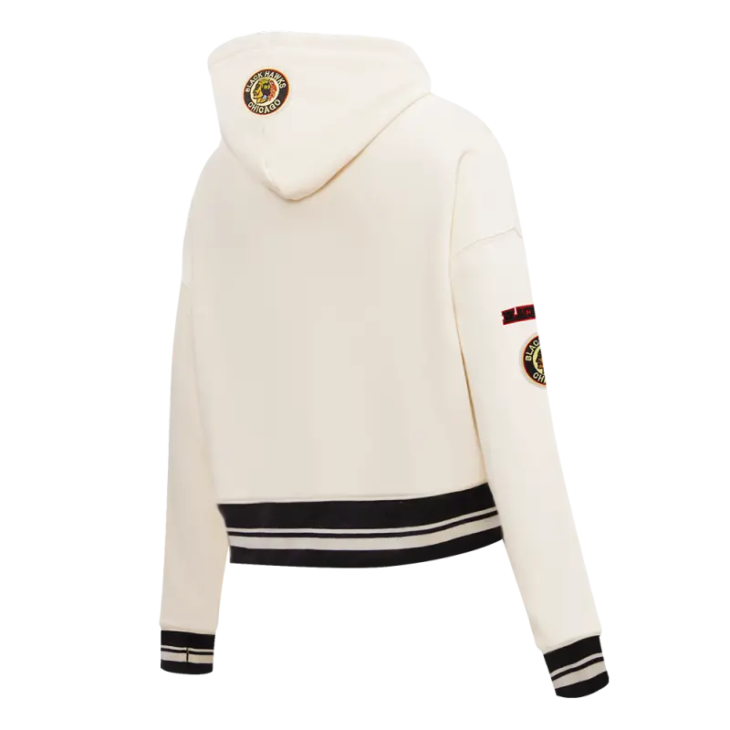 NHL CHICAGO BLACKHAWKS RETRO CLASSIC WOMEN’S RIB CROPPED PULLOVER HOODIE (EGGSHELL\/ BLACK)