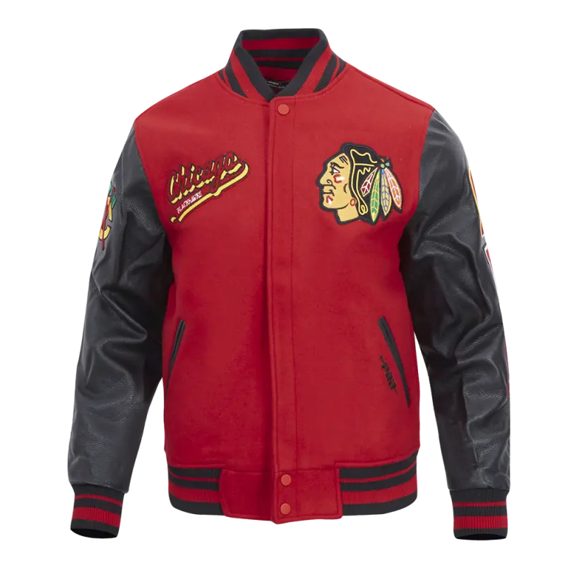 Home / Shop / Chicago Blackhawks / NHL CHICAGO BLACKHAWKS SCRIPT TAIL MEN’S RIB WOOL VARSITY JACKET (RED\/BLACK)