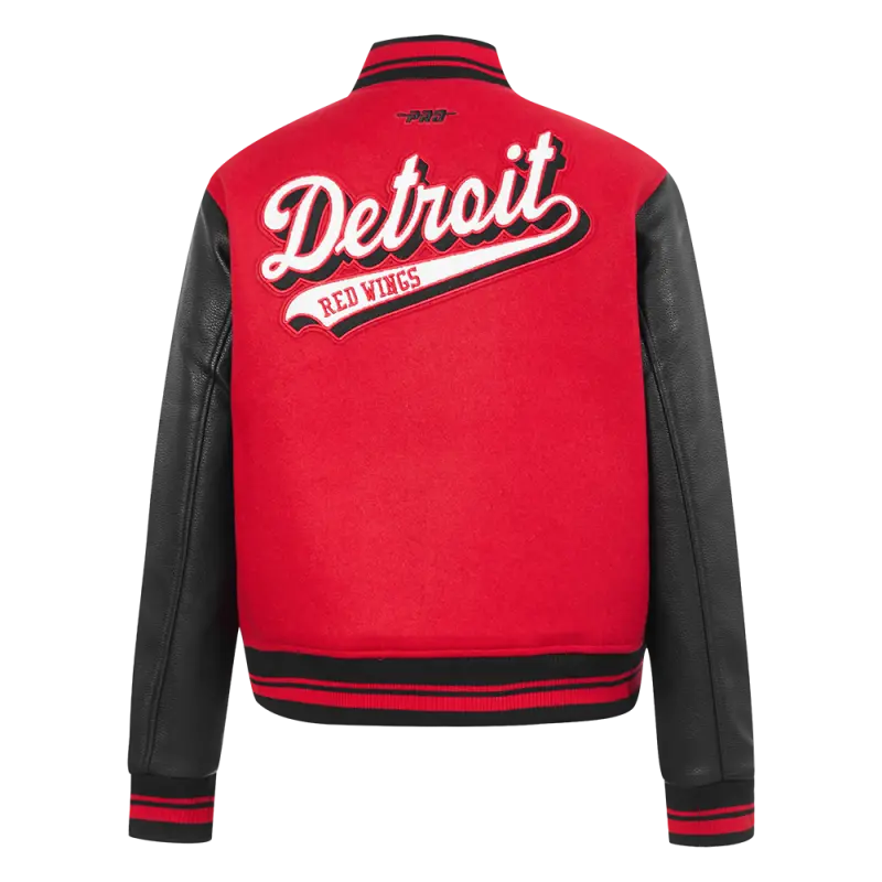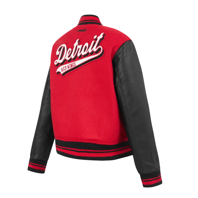 NHL DETROIT RED WINGS SCRIPT TAIL WOMEN’S WOOL VARSITY JACKET (RED\/BLACK)
