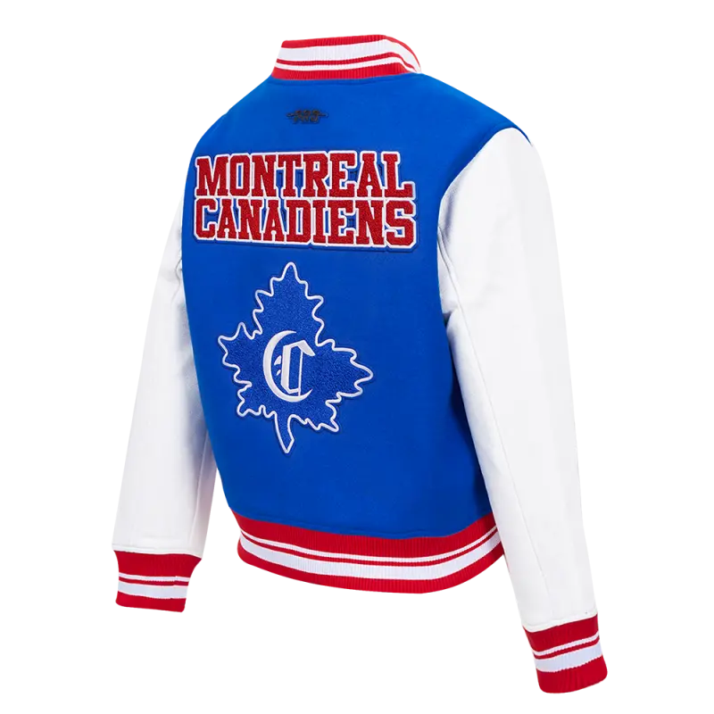 NHL MONTREAL CANADIENS RETRO CLASSIC WOMEN’S RIB WOOL VARSITY JACKET (ROYAL BLUE\/RED)