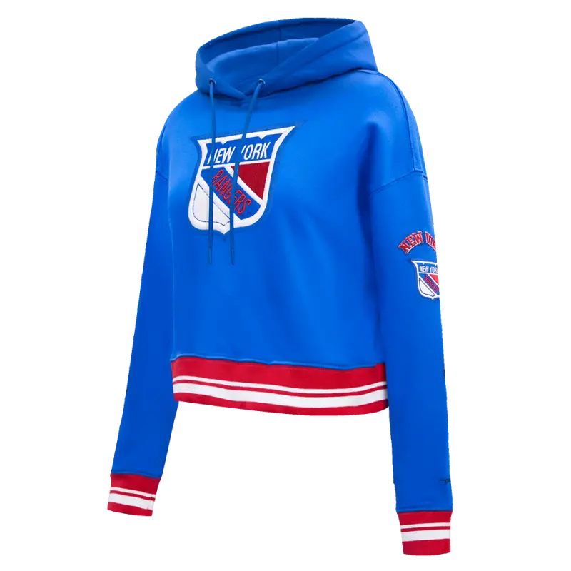 NHL NEW YORK RANGERS RETRO CLASSIC WOMEN’S RIB CROPPED PULLOVER HOODIE (ROYAL BLUE\/RED)