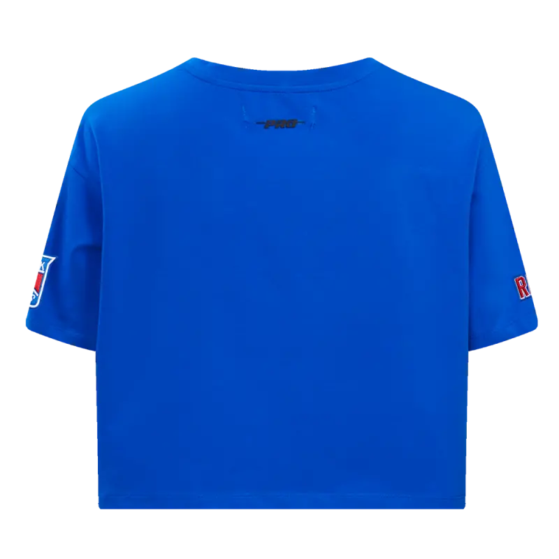 NHL NEW YORK RANGERS SCRIPT TAIL WOMEN’S SINGLE JERSEY BOXY TEE (ROYAL BLUE)