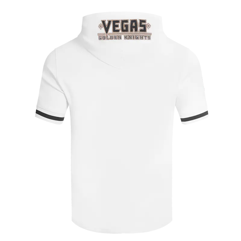 NHL VEGAS GOLDEN KNIGHTS CLASSIC CHENILLE MEN’S DOUBLE KNIT SHORT SLEEVE PULLOVER HOODIE (WHITE\/BLACK)