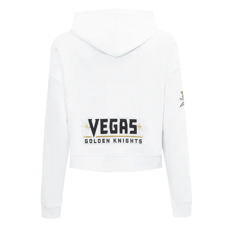 NHL VEGAS GOLDEN KNIGHTS CLASSIC WOMEN’S FLEECE CROPPED PULLOVER HOODIE (WHITE)