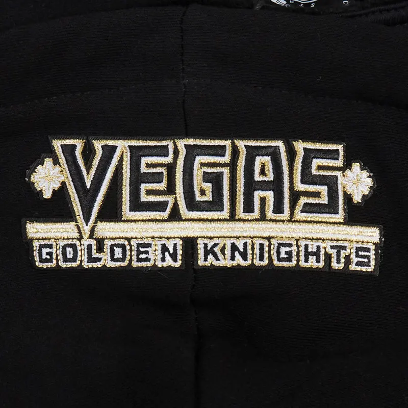 NHL VEGAS GOLDEN KNIGHTS SCRIPT TAIL WOMEN’S RIB FLEECE CROPPED PULLOVER HOODIE (BLACK\/GRAY)